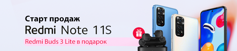 Мощный Redmi Note 11S — это профессиональная система из четырех камер с основным модулем 108 Мп, процессор MediaTek Helio G96, быстрая зарядка 33 Вт, дисплей AMOLED 90 Гц. Приобретайте новинку с 21 по 30 апреля и вы получите наушники Redmi Buds 3 Lite в подарок!